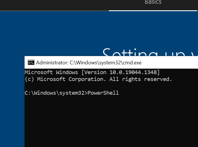 - Change Command Prompt to PowerShell by typing PowerShell and pressing enter