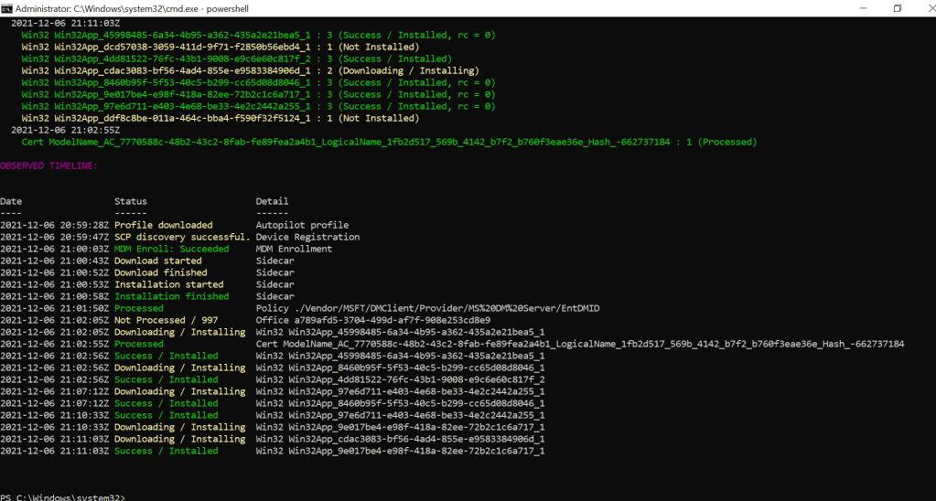 I havent created this script, all credit goes to the creators, but it certainly is a useful script to troubleshoot Autopilot or even just to get visibility into the provisioning process. The source of the script is here –