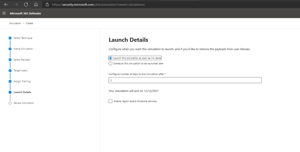 Define a training due date to ensure that users complete training by either 7, 15 or 30 days post simulation. Select ‘Next’ to continue