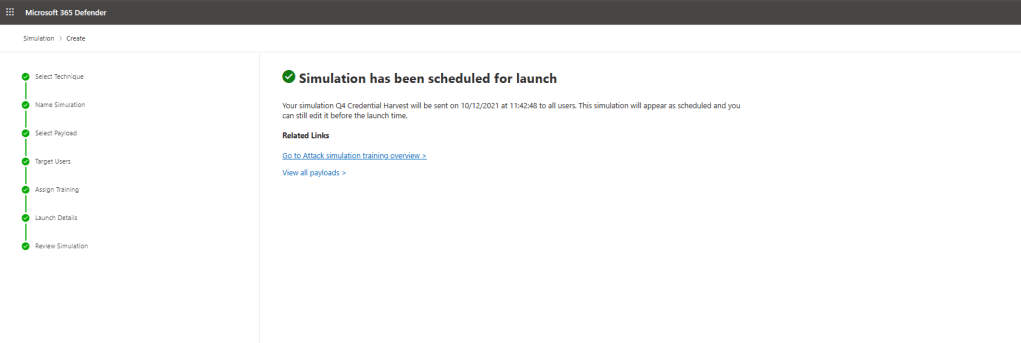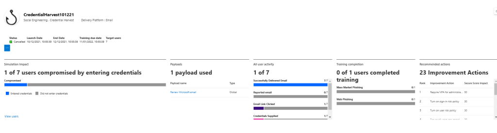 - Back in the Attack Simulation Training area of the security portal further visibility of the simulation can be seen