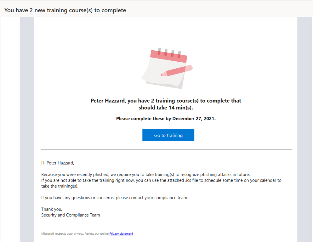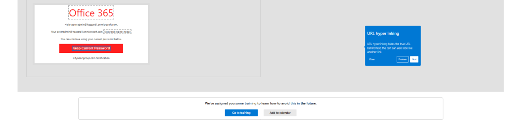 - Once the simulation has commenced and users start to receive the emails, they will receive an email such as the below