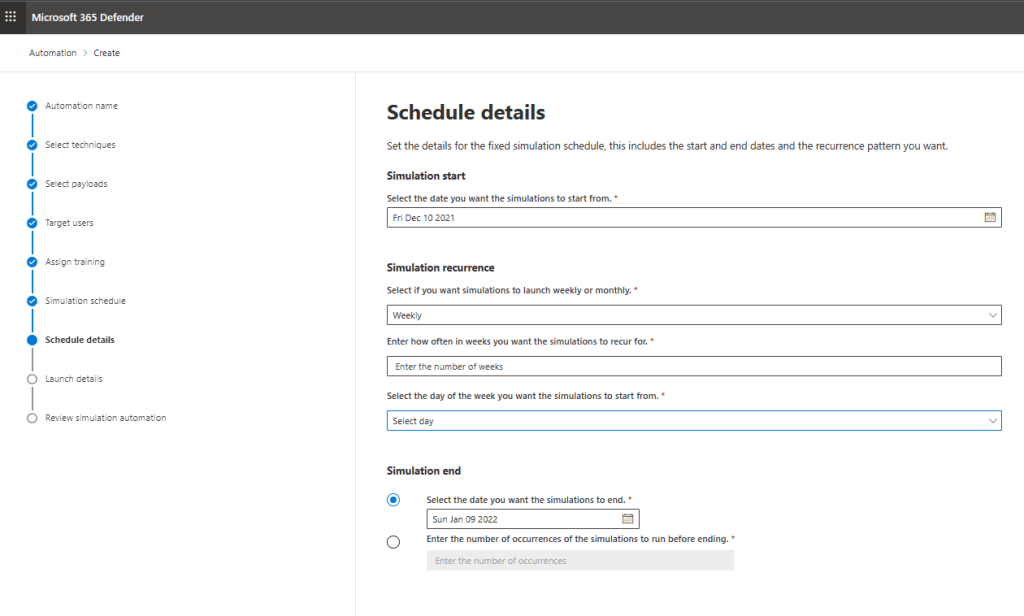 - Scheduled automation of simulations can be configured including configuration of randomised payloads that run either to a defined schedule or randomly within defined recurrence periods (weekly/monthly)