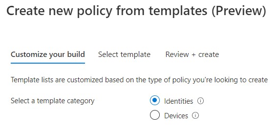 Select either ‘Identities’ or ‘Devices’ as the template category as required –