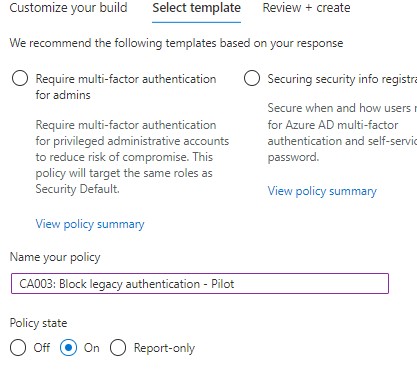 Once some knowledge and confidence has been gained from seeing the results of implementing the templated policies, policies can be created from scratch, in line with organisational requirements, taking into consideration all of the granular options available within Conditional Access Policies, or simply amending 1 of the templates above to suit.