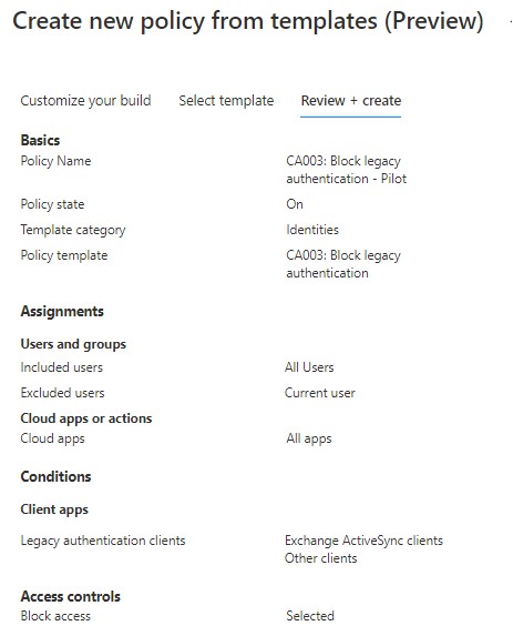 - Block legacy authentication