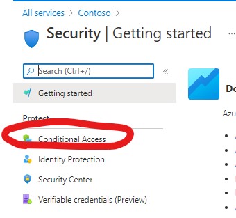 Select ‘Conditional Access’ from the left hand pane, under the ‘Protect’ sub-heading –