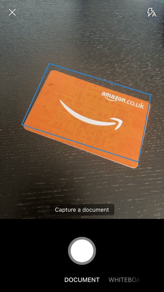 Select from either ‘Document’, ‘Whiteboard’, ‘Business Card’ or ‘Photo’