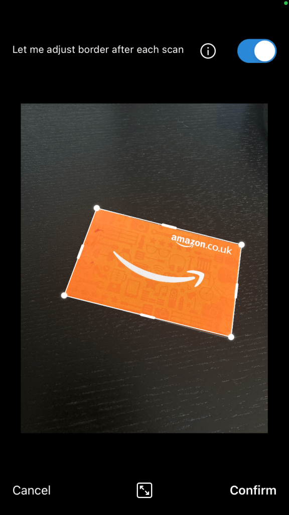 Adjust the captured bordered area if necessary and select ‘Confirm’ to proceed. The following example was automatically bordered and nothing was manually modified.