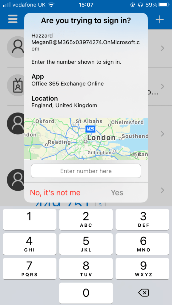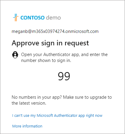 - In addition to the standard ‘Approve sign in request’ message, a number is presented on screen