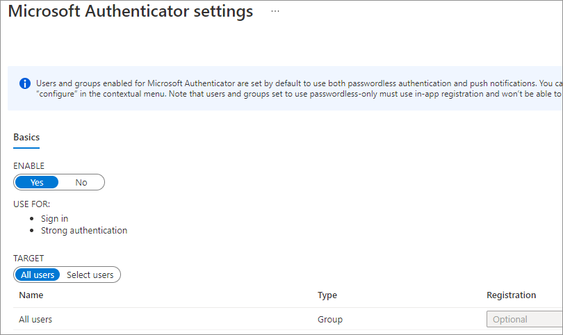 - Authentication mode – Push