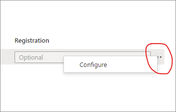 3. Toggle ‘Enable’, to ‘Yes’ and use the ellipsis to the right of the ‘Registration’ field to open further settings in ‘configure’