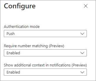 - Require number matching (preview) – Enabled